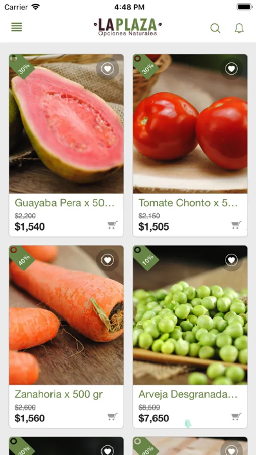 Encuentra en La Plaza - Opciones Naturales el mejor mercado de Bogotá a pocos taps de distancia. Adquiere los mejores y más frescos productos de frutas, verduras, carnes, hortalizas, huevos, pescados, mariscos, lácteos, orgánicos certificados y mucho más, de la manera más fácil y rápida.