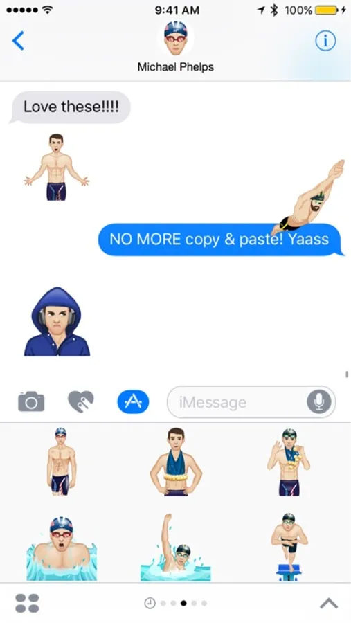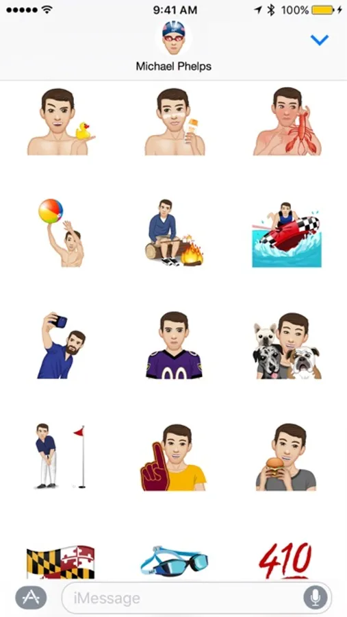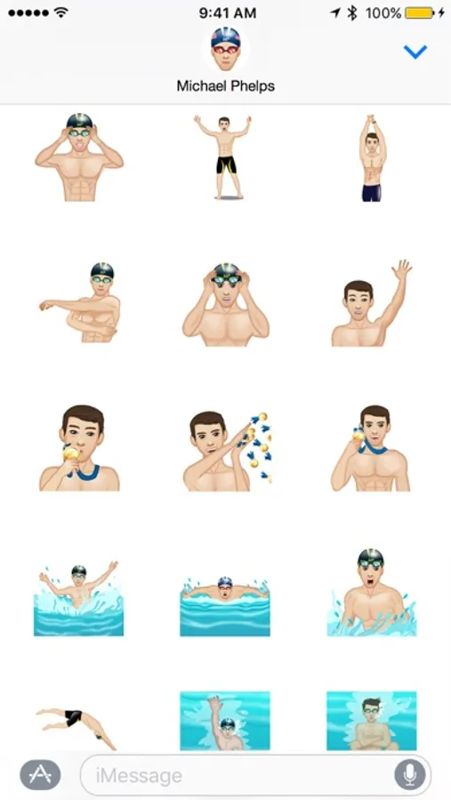 Bring your conversations to life with over 130 of personally curated icons from Michael Phelps by Moji Stickers.