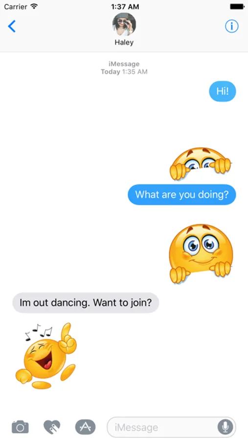 Peel and place these animated emoji stickers on anything you want in your conversation — bubbles, images, or even other stickers.