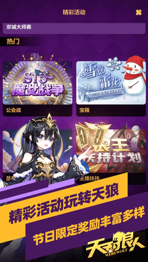 幸运宝箱,天狼圣典,海量道具等你来拿。