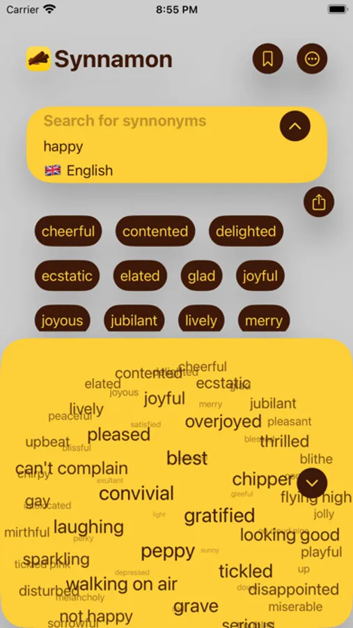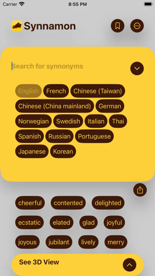 Multilingual thesaurus app! Interactive Word Cloud interface for convenient and efficient display of synonyms. Sift through various synonyms and associated words by clicking on the cloud. One of the best apps visually for language and vocabulary learning! Single app for languages in English, Chinese (Traditional and Simplified), French (including Canadian French - Quebec), Norwegian, Swedish, Italian, Thai, Spanish, Russian, Portuguese, Greek! Global Thesaurus!