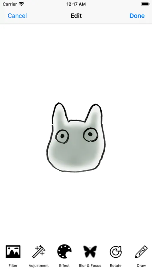 Filter,Adjustment,Effect,Blur & Focus,Rotate,Draw,Splash,Crop,Resize,ToneCurve,Sticker,Emoticons,Text.…