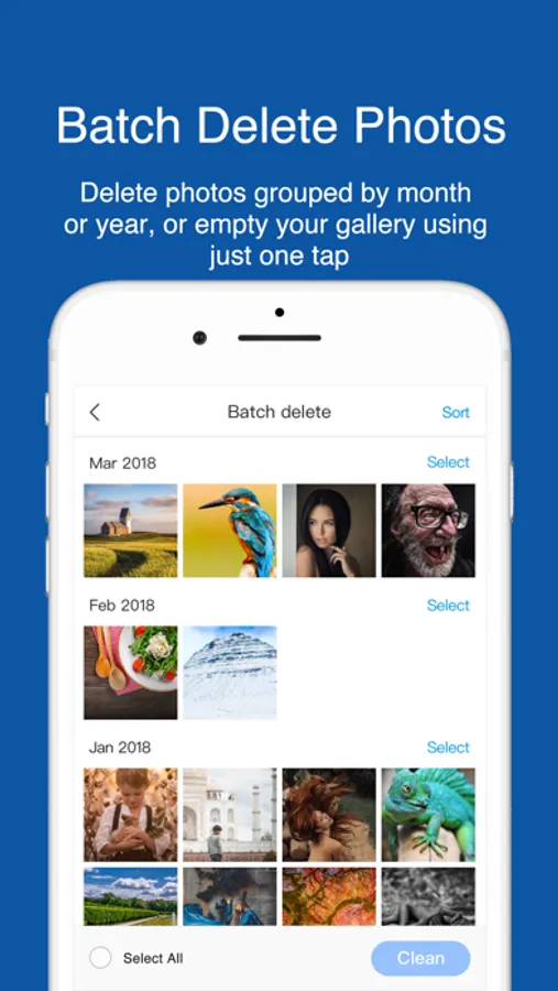 -- Bulk Photo Remover - Group by day, month, or year, or delete them all with just one tap.