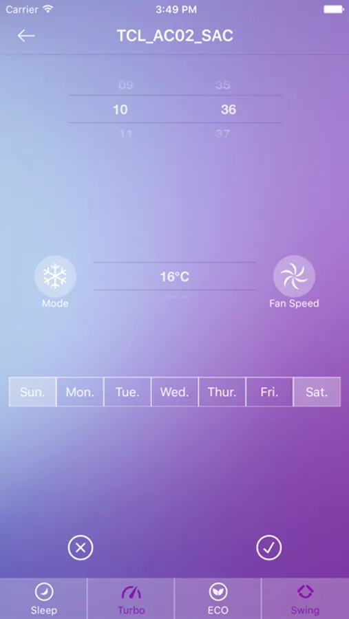*Setup timer to turn on the AC with predefined working mode or turn it off at certain time in certain day(s),