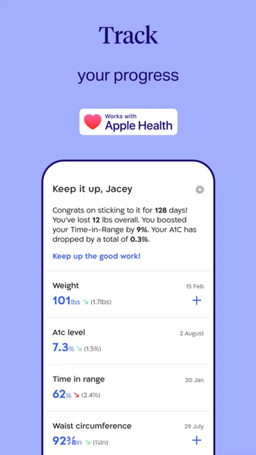 • With interactive progress reports, smart indicators, and graphs, you can stay on track to control your blood sugar, lower your A1C, and reduce medications.