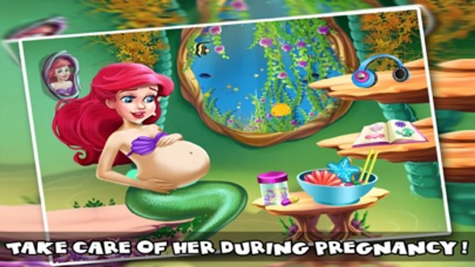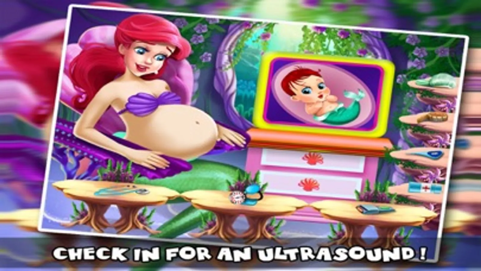 You will have to take care of the pregnant mermaid first, you can make her drink some fresh juice, give her a tablet and a thorough health care checkup. Once you have selected the mommy, you can check her heart beat using a stethoscope. If she is healthy and ready to deliver the baby, you can apply cream on the mommy’s tummy and you can scan the baby. and many more treatment.