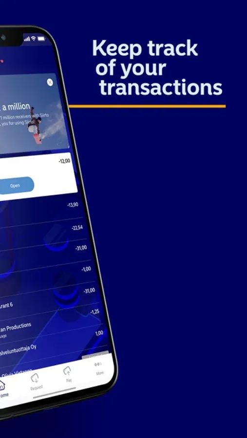 Did you buy a joint gift or pay a restaurant bill? Or maybe you bought movie tickets for your friend? Siirto makes it easy for you to request money from another Siirto user, and it’s easy to keep track of open requests.