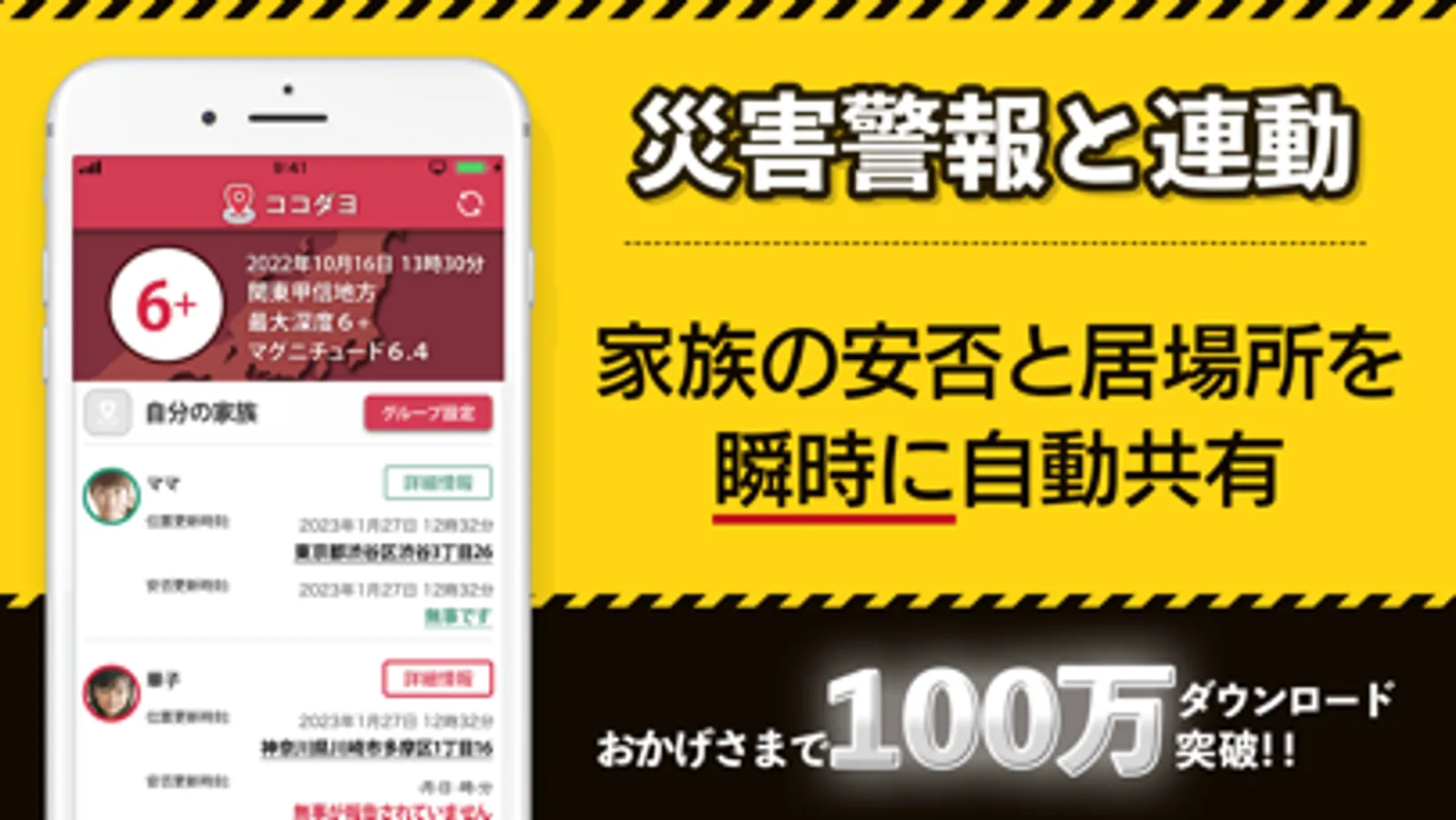 ・地震や大雨などの災害時に、家族の「現在地」と「安否」を確認する防災アプリとしてご利用いただけます。