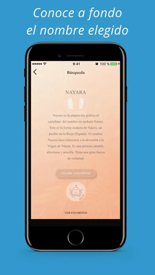 Con Neimi podrás ver el significado de todos los nombres que te gusten para tu bebé. Además podrás marcarlos como favoritos e ir creando una lista de nombres finalistas a la que podrás añadir o eliminar nombres de una forma sencilla e intuitiva, lo que os ayudará y facilitará la maravillosa tarea de elegir el nombre para vuestro bebé.