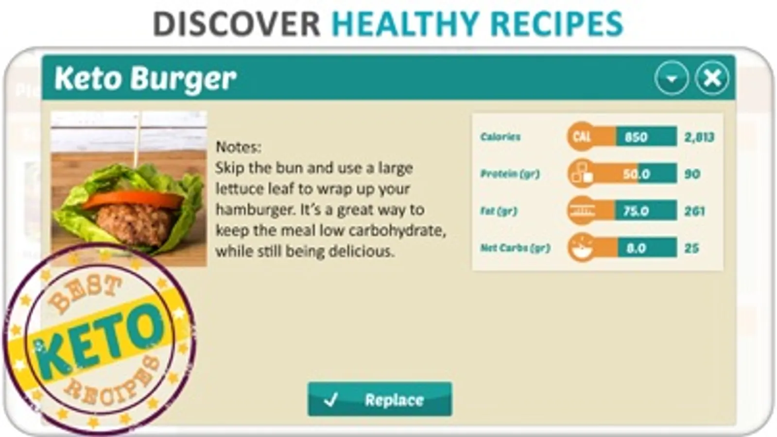 • Weekly Menu Creator - when you eat the foods you love, sticking to your meal plan is going to be fun. We have a huge range of healthy recipes, from keto breakfasts to your Grandma’s apple pie. Choose your recipes and we’ll create a meal plan just for you!