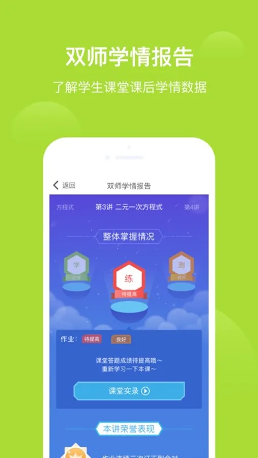 爱学习APP目前支持多学科的作业,供小学数学语文、初高中数学物理化学的部分班型使用。 还为双师班级定制了特别的功能哦~课堂答题,智能报告等你来~