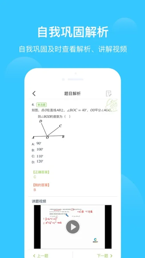 【解题视频 举一反三】习题不会做,我们有新招——详细的解题视频,帮学生迅速理清重点难点,思路清晰,学习起来so eazy!同类型的“相似题”练习一并推送,帮助学生完成课后复习,让学生举一反三,吃透疑难知识点~