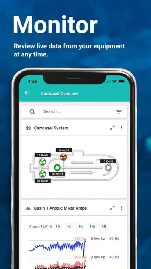 Know what is happening in real-time. Simply create customized HMI widgets to provide live machine monitoring or water quality monitoring for any part of your plant. See historical trend charts to analyze performance or build reports.