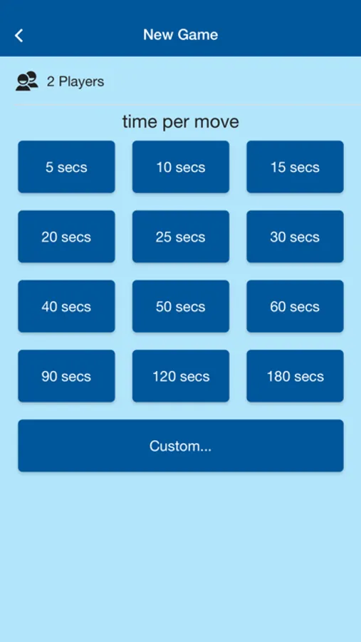 "Per-Game" mode grants a fixed amount of time for each players for the whole game, and their timers will start ticking only in their own turns. This mode is suitable for games like chess, in which players are given more flexibility to allocate their time.
