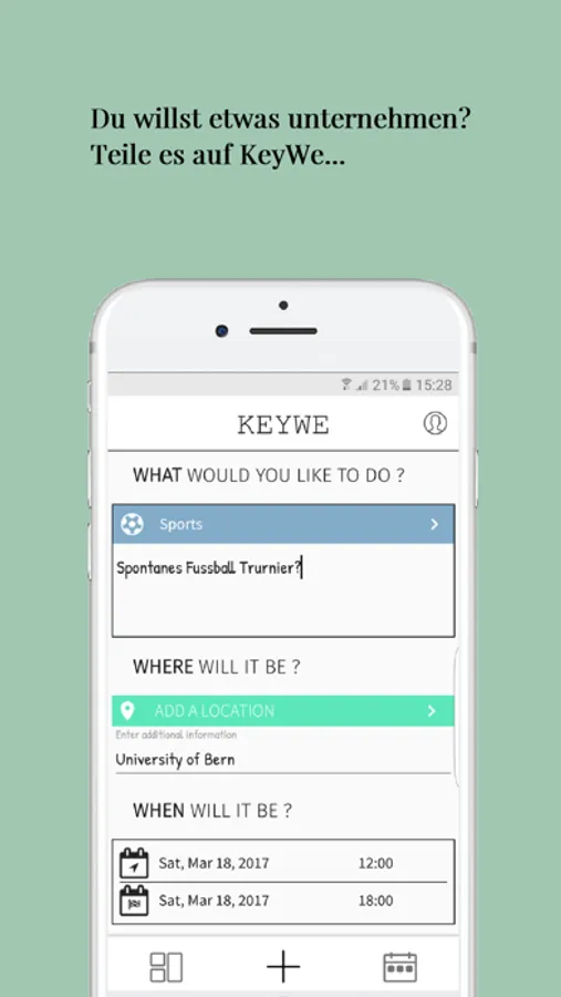Create an activity and decide whether to send it to your friends or to the entire KeyWe community