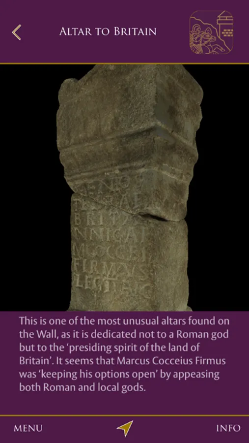 This application allows you to explore, and learn more about, the Antonine Wall, part of the Frontiers of the Roman Empire World Heritage Site. The Antonine Wall was a turf defence built by the Romans around 142 AD, across the central belt of Scotland. Today, there are a number of forts and fortlets, a bathhouse, and impressive remains of the ditches and banks within easy reach of towns and railway stations. Download the app and experience 360° virtual reconstructions, ‘handle’ 3D models of artefacts, and explore the sites along the Wall - even from your armchair!