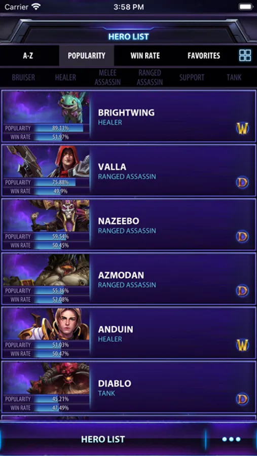 Improve your Heroes of the Storm gameplay with this unofficial app! This is a fan made app that will help you become a better player.