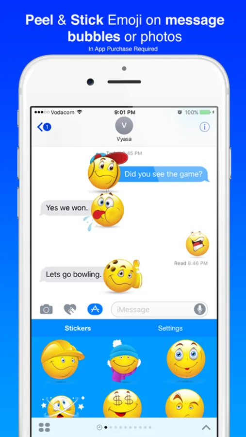 Use stunning new emoji stickers and make your messages exciting. Choose from a brilliant selection of unique stickers. You can peel and stick the emoji on message bubbles, photos or just place them absolutely anywhere in your conversation.