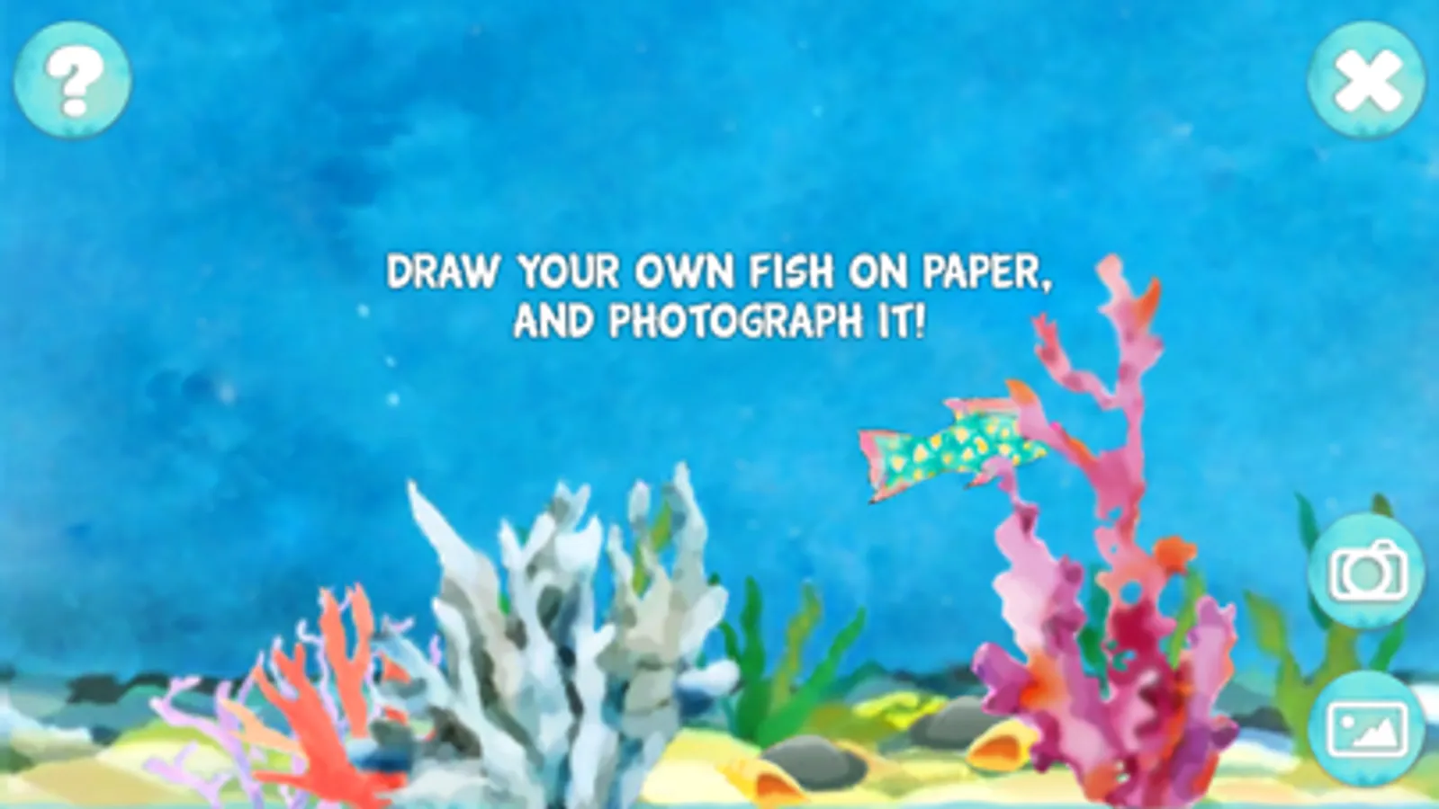 Add your own fish by photographing any drawing, painting, or anything you want to use as a fish. Watch it come alive and swim inside the app!