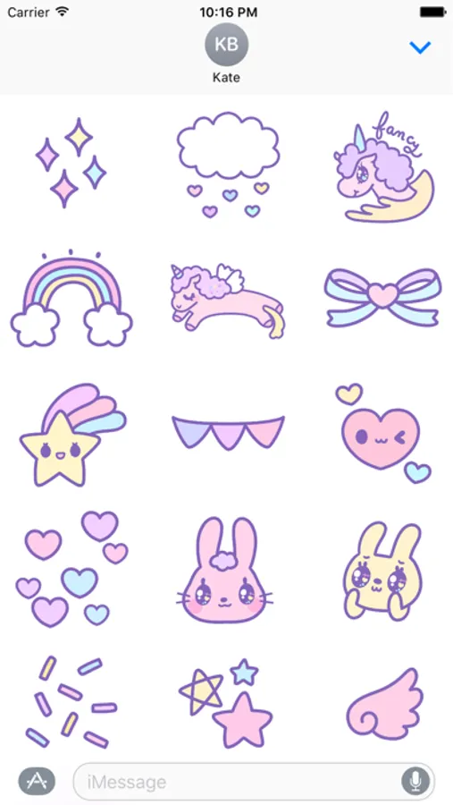 Add this fantastic sticker pack to your iMessages and have fun with 40 magical drawings including dreamy unicorns, cute bunnies and little girly characters.