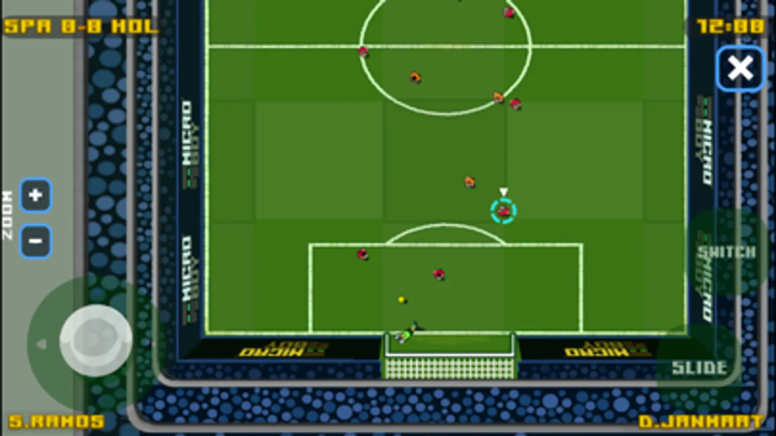 Easy and intuitive controls. Use the screen joypad to move around and swipe the screen to pass, shoot and tackle or use traditional on screen buttons.