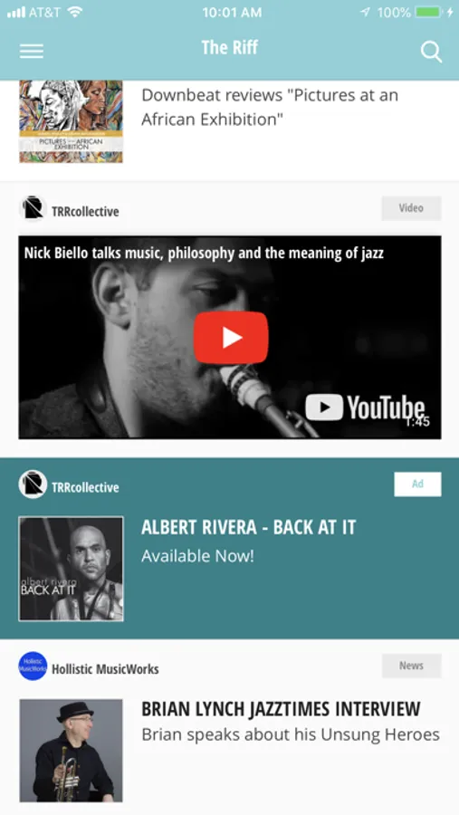 "The Riff: music news" brings independent artists and labels under the same roof. As it collects the news stories and performances you get to sort your feed and save events right to your calendar.