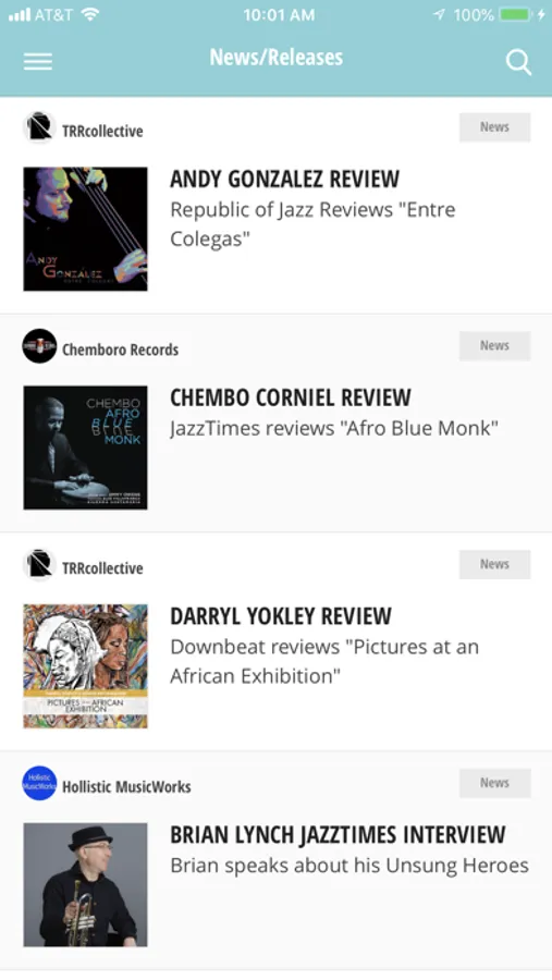 • "Follow" artists such as Chembo Corniel, The Curtis Brothers, Brian Lynch, Ralph Peterson, Ray Vega, Andy Gonzalez and labels such as Tippin Records, Onyx Productions, Holistic Music Works and TRRcollective.