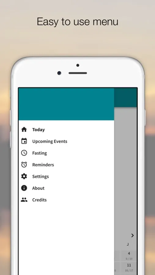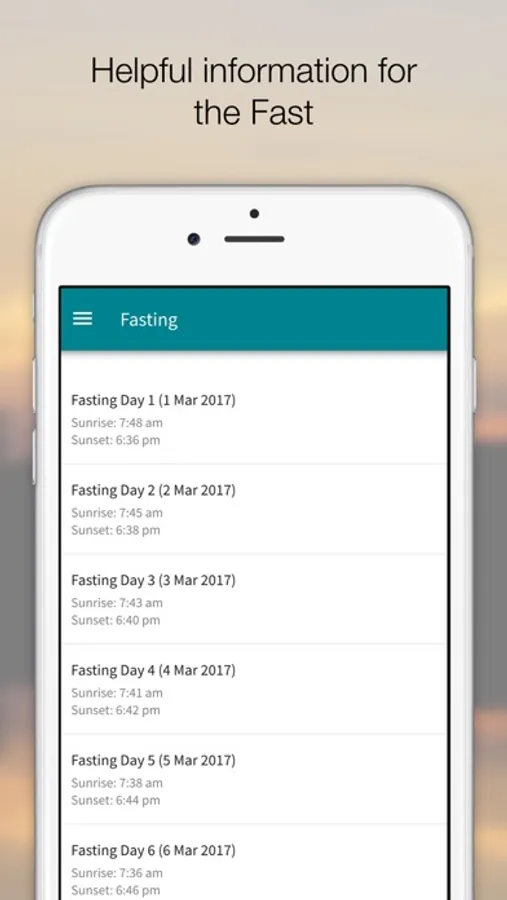 - Fasting view that shows the date along with the Sunrise and Sunset times for each day of the Fast