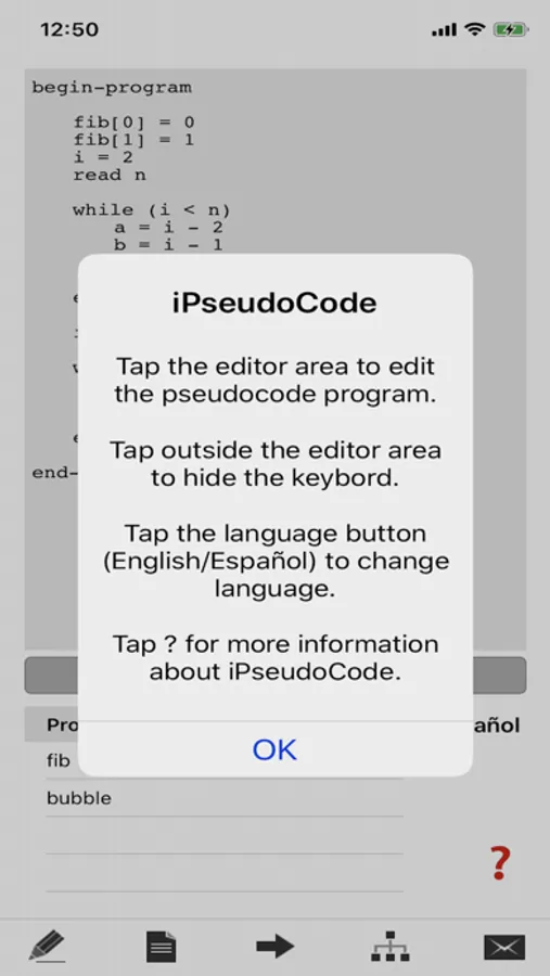 iPseudoCode allows the user to implement and execute small programs written in pseudocode. The app also allows to generate automatically a flow diagram direct from the program to illustrate graphically the flow of the program control.