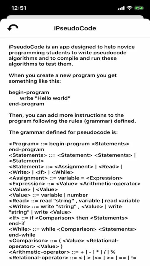 iPseudocode is an iPhone/iPad app designed for novice programmers, students beginning the learning process of programming languages and programming teachers that want to introduce the basic concepts of programming (sequencing, selection and iteration), before a complex programming language.