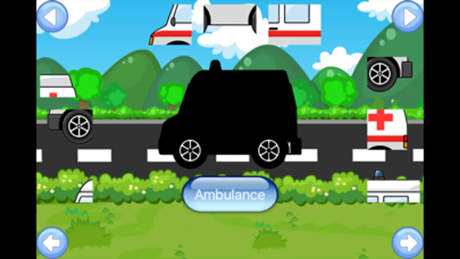 There are 32 excellent puzzles in this app . They are created for little fans of such vehicles with sounds as cars,police car, train,ambulance,airplanes,Taxi, trucks, train,ships and many others.