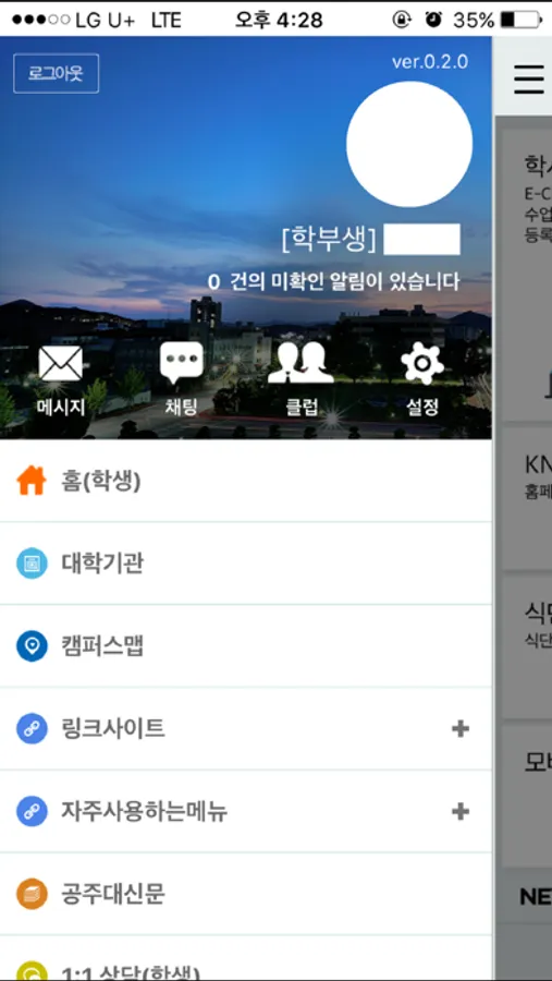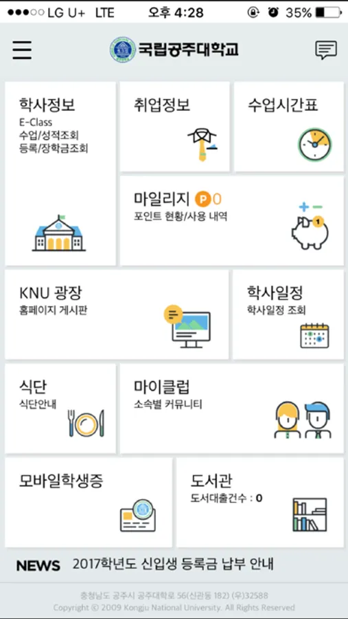 공주대학교 앱은 국립공주대학교 정보전산원에서 학내 구성원을 대상으로 서비스하는 공식 앱입니다.
