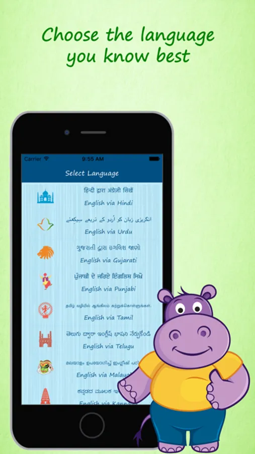 Our app is one of the most versatile and best interactive tools to learn English just using your native language. Learn conversational English using the script of your native language completely for free. Learn English through Hindi, Bhojpuri, Bengali, Gujarati, Kannada, Malayalam, Marathi, Punjabi, Tamil, Telugu, Urdu, Spanish, French, Portuguese, German, Simplified Chinese, Traditional Chinese and Bahasa Melayu (Malay).