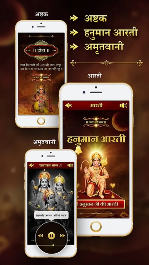 In this beautifully designed devotional application includes everything of hanumanji like Hanuman Ashtak, Hanuman Chalisa, Hanuman Aarti, Sundarkand, Hanuman Bhajans, Amritwani, Sankshipt Ramayan and also photo gallery.