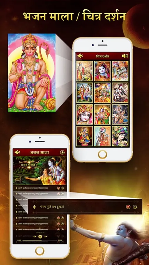 - 25 very famous devotional Bhajans including Hanuman Baan, Hanuman gussain, Vandan and Stavan.