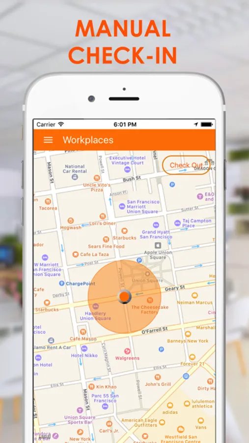 - Automatic Time tracking when you arrive at work, send a notice to the device for you to know.