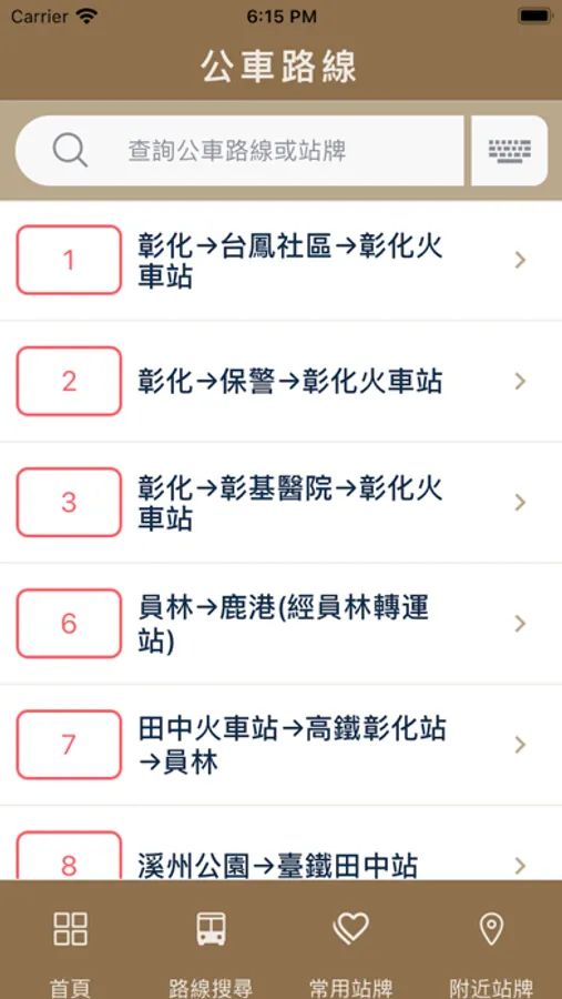 1. 路線搜尋:提供彰化地區即時動態資訊,快速查詢預估到站時間。