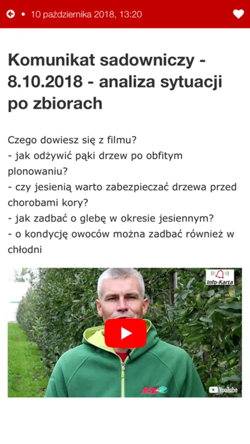 Dzięki aplikacji użytkownik nie musi przeszukiwać codziennie wielu stron internetowych, aby dotrzeć do najnowszych komunikatów sadowniczych. Aplikacja zbiera je od różnych firm: doradców sadowniczych, producentów środków ochrony roślin i nawozów oraz innych podmiotów, które przygotowują porady i informacje dla sadowników.