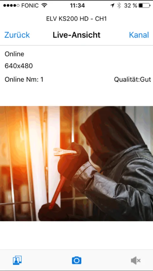 • Fernzugriff über Mobilgeräte-App ELV KS200 HD : Live-Video, Foto/Schnappschuss, Audioüberwachung, Alarm bei Ereignissen