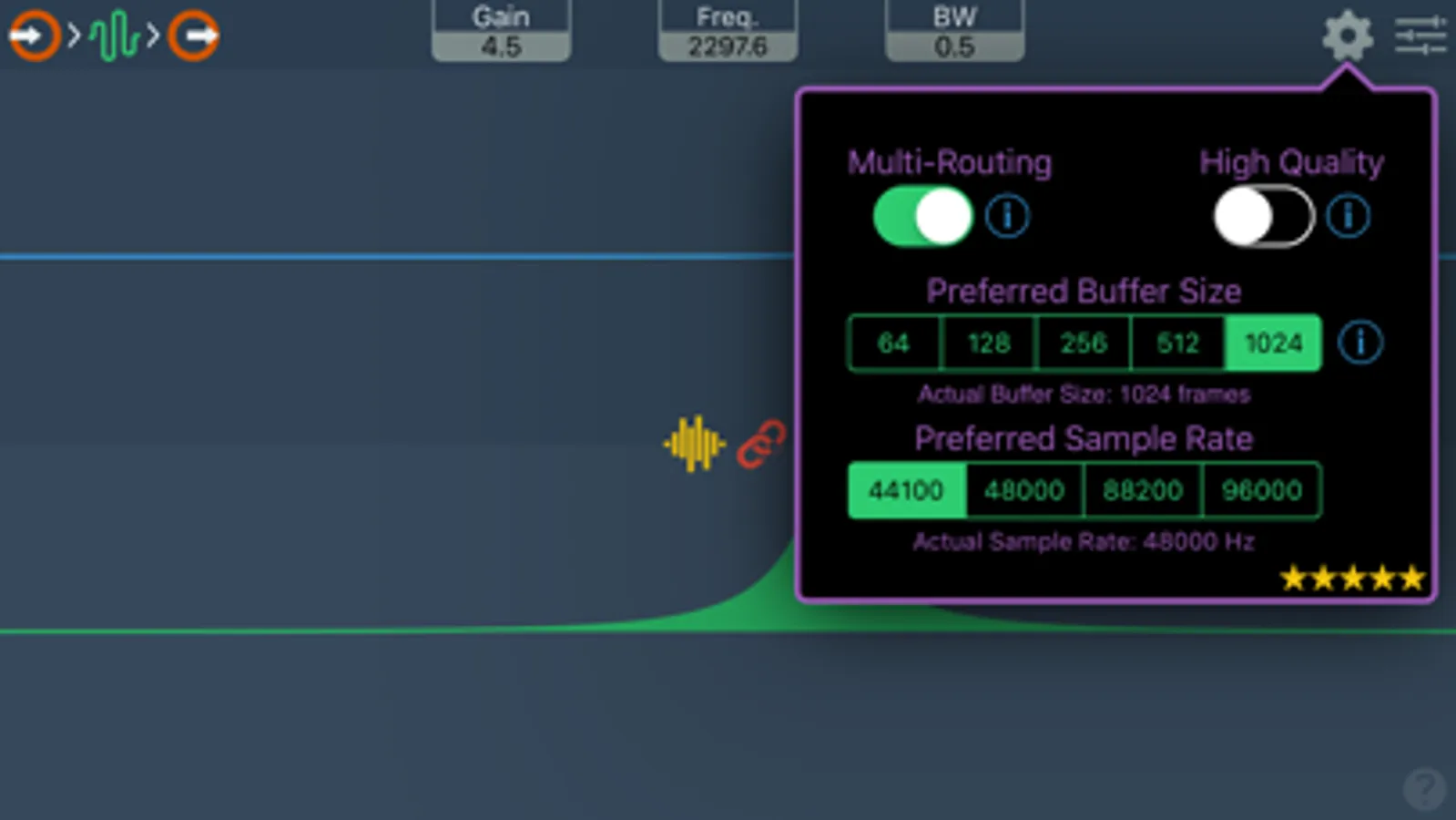 - Precise control of Gain, Frequency, and Bandwidth with gestures and text input