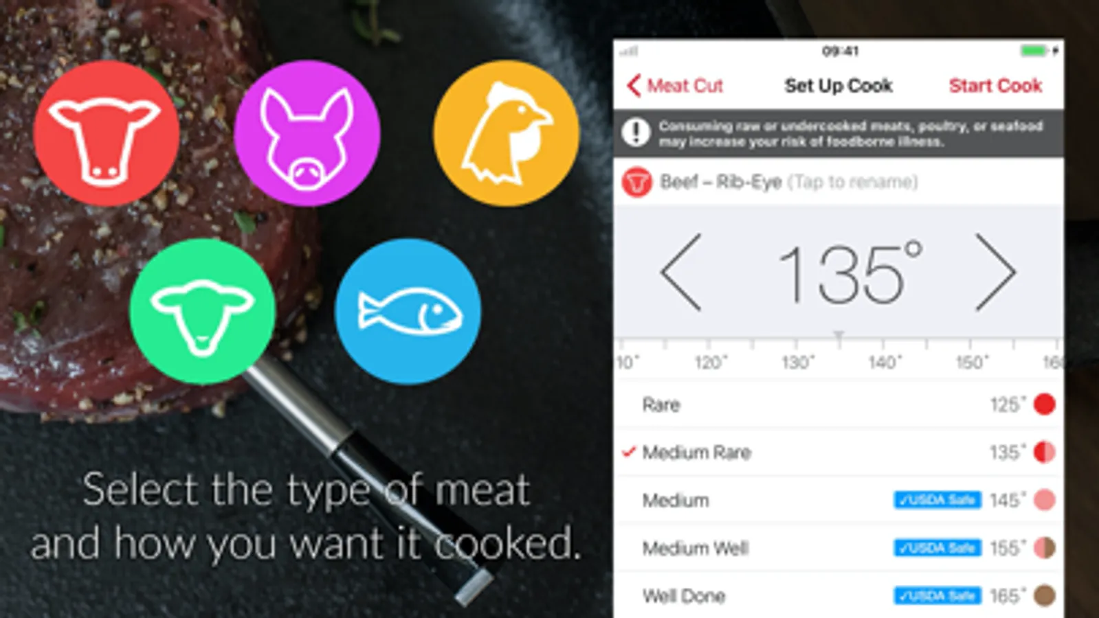 The MEATER® app, together with the MEATER® meat thermometer (sold separately at https://meater.com/shop) will change the way you cook your meals, and make it a new and exciting experience. Using patented software algorithms, the MEATER® app will give you cook time estimates, and guide you towards the juiciest steak, chicken, turkey, fish or other cut of meat that you've ever cooked.