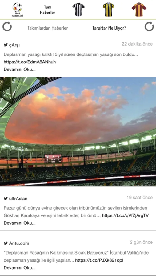 Spor Haberleri uygulaması, üç büyüklerin resmi Twitter hesaplarından paylaşılan haberleri tek bir çatı altında sunar.