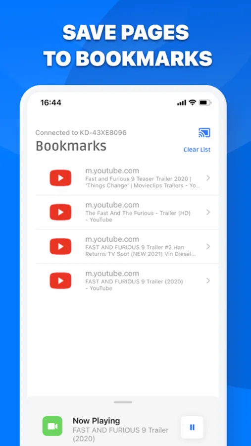 Send videos of any length - from favorite movie trailers to shows lasting several hours. Add videos from different websites to playback queue in any quantity or order. Castio makes watching web videos easier. You don't need to install additional apps to Chromecast or wade through manuals many pages long.