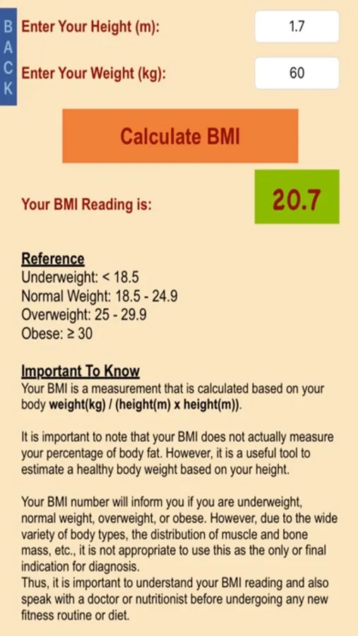 • BMI (Body Mass Index) calculations.