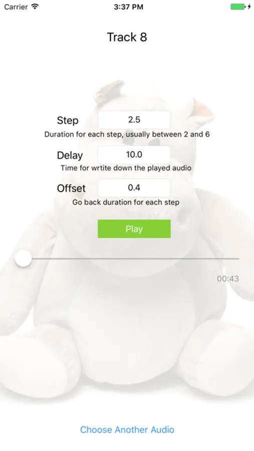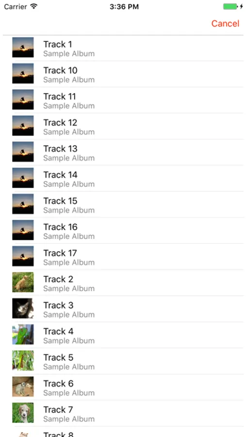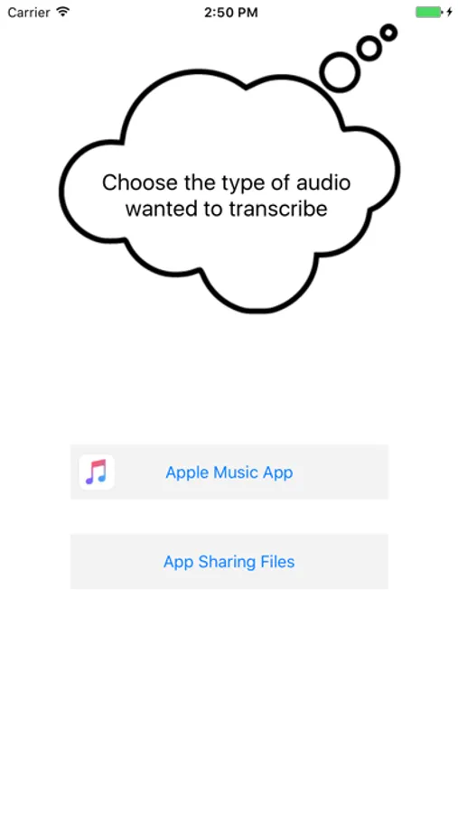 You can choose audio files from your Music application. In addition, by putting your files in the "App Sharing Files", they are available to play.