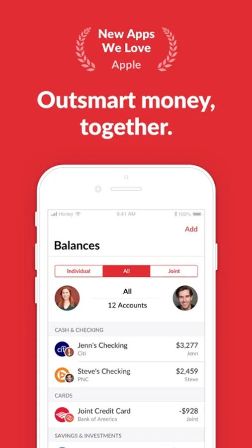 Featured by Apple, Forbes as "New Apps We Love", "Finance for Happy Couples", "Inspiring Stories & "Best Tech Apps To Help You Save & Invest", Honeydue is the best personal finance app for couples. Track your balances, budgets and bills together - and engage in meaningful conversations about your habits and goals.