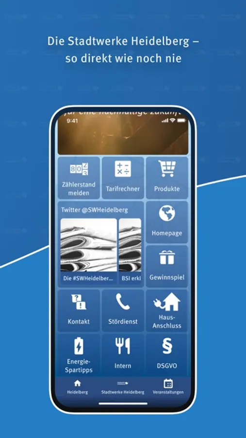 Nutzen Sie auch den direkten Weg zu den Stadtwerken Heidelberg: Schicken Sie Zählerstände komfortabel ein, nutzen Sie den Tarifrechner, die Energiespartipps oder melden Sie Störungen.
