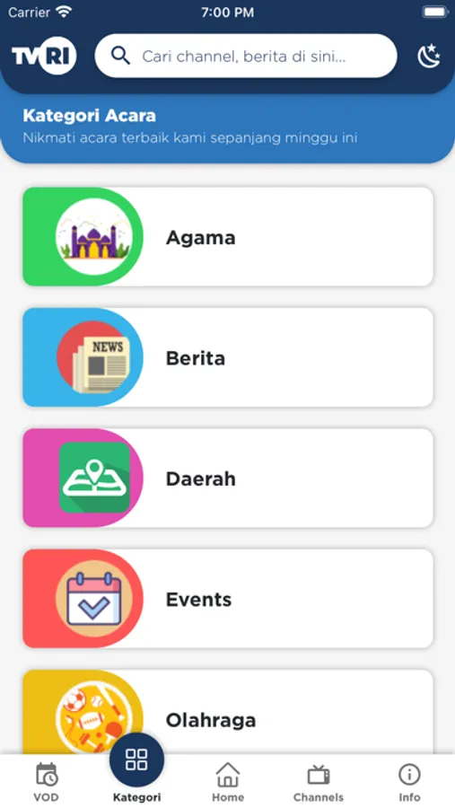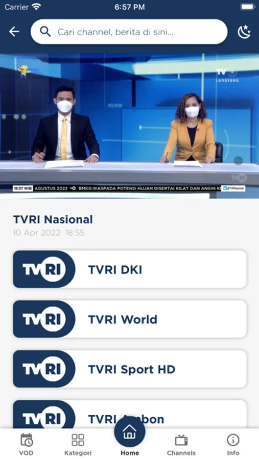 TVRI now presents News, All Channels Live Streaming and VoD (Video on Demand) services in one application that you can download for free on your device!