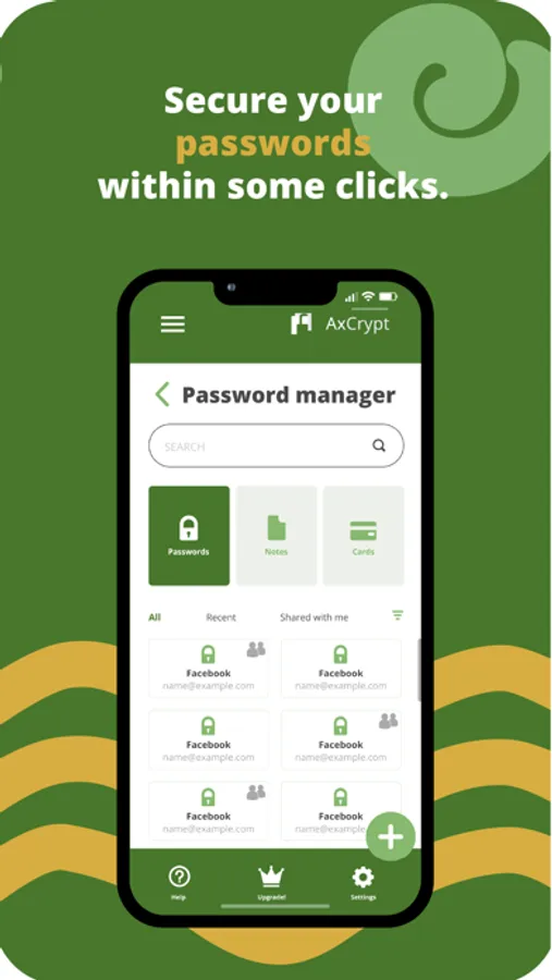 AxCrypt app includes password manager. Enjoy secure access to your passwords, cards, and notes from anywhere with AES-256 encryption. Create, save, and manage passwords, credit and debit card details, and encrypted notes on the go.