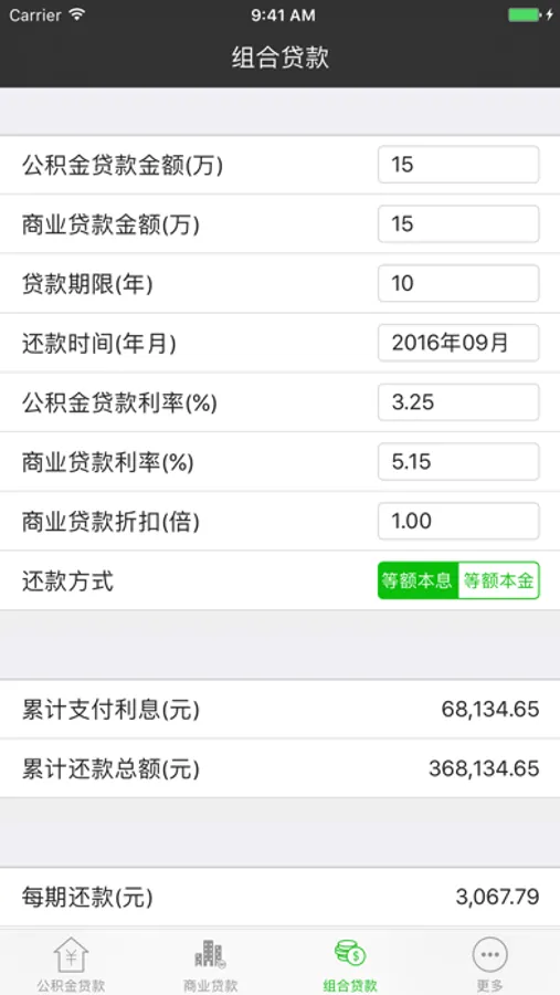 2017年度推荐最新利率房贷计算利器!实时计算公积金贷款、商业贷款、组合贷款等各类贷款,通过等额本息、等额本金等方式计算还款期数、每月月供、利息总额、还款总额。